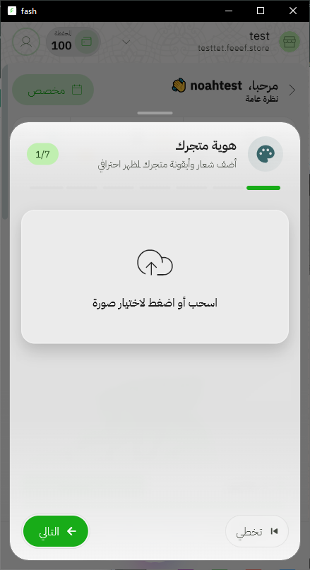 بعد رفع الصورة، اضغط على التالي للانتقال إلى الخطوة الثانية من إعداد متجرك.