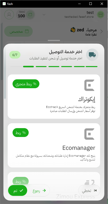 بعد اختيار خدمة التوصيل وربطها، اضغط على تم للانتقال للخطوة الأخيرة.