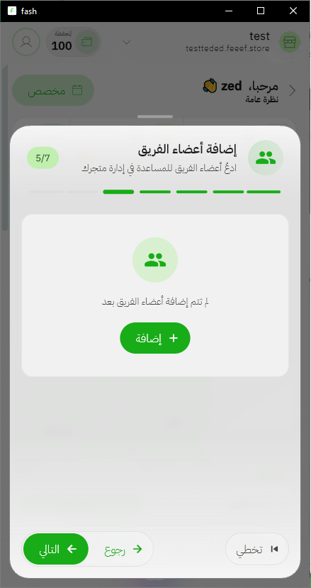 إذا كنت تدير المتجر بنفسك حالياً، يمكنك تخطي هذه الخطوة. يمكنك دائماً إضافة أعضاء جدد لاحقاً من إعدادات المتجر.